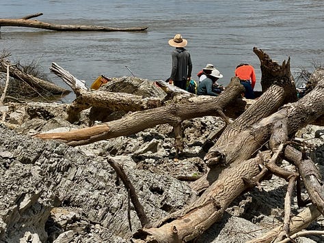 Towards end of another hot summer day, we dove into a shady spot at the Old Mouth of the Forked Deer River. This is a dynamic connection to rich wetlands beyond (within the Anderson Tully Wildlife Management Area). Great views, cool breezes off river, shady places amongst the willow trees -- a perfect campsite.