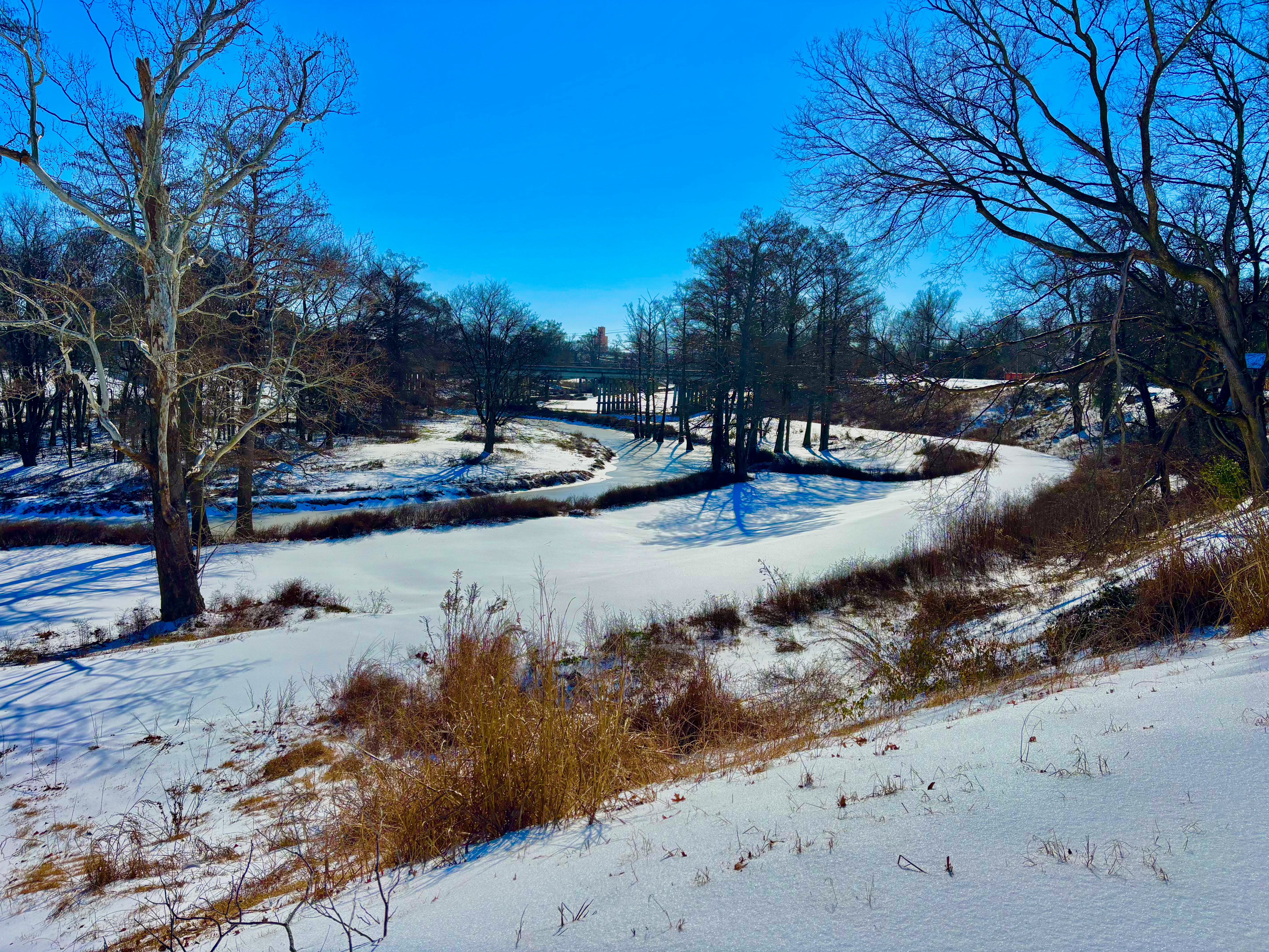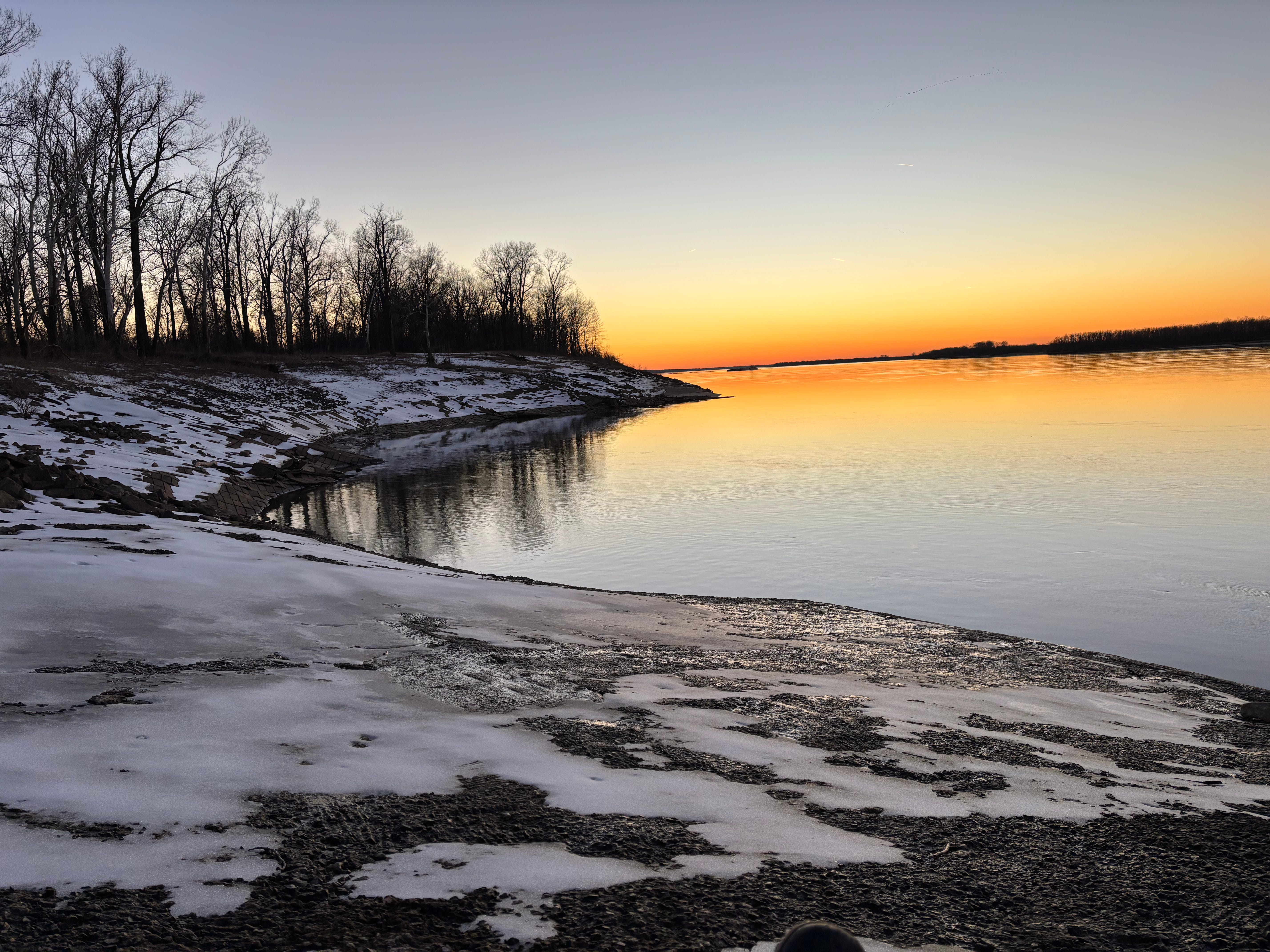 I did not fret too long during shutdown. Phone still working, several weeks ago I commenced exploring & documenting -- by foot. I was very curious -- how did creation survive? After checking in on my father Gare-Bear (who lives 1/2 mile upstream the Sunflower River), and my sister Jennifer, and several friends in tender situations, I wandered about visiting with all my wild buddies. Interesting how animals lose their fears of humans in desperate situations. Seems like they knew that I knew that they were so pressured that I was no longer a threat. Or maybe they could feel my compassion. Here in town we witnessed flocks of birds hunkering down in the few leafy or muddy places left exposed over the riverbank, under logs and other debris, and in thick viney brushy places. After 2 days of ice & sleet, I watched a flock of sparrows and wrens repeatedly attack fire ant nests, in their piles of earth along the edges of our Quapaw Canoe Company Sunflower Building. I've never seen birds go after fire ants before. Apparently hunger overcame dietary preferences! Flocks of robins, blackbirds, grackles, cowbirds and cardinals dove underneath our canoes and our trailers, and ripped apart the piles of leaves wherever they could get to them, uncovering grubs and frozen bug treats. One day last week I watched an armadillo descend the river bank, and go clambering along the river's edge behind canoe company. I followed her trail, easy to do in the sun-softened ice, similar to a river otter, the tail meandering back & forth amongst claw marks. The temps were steadily dropping that night, through the teens into the single digits. She wandered into our big canoe overhang and started shuffling amongst the wind-blown debris, physically pushing piles of leaves together in a low spot, I believe to build a sleep nest. I watched for a long time, until sun set and cold creeped in, and then left her to hopefully a survivable night, nestled down as she was in between Grasshopper and Junebug 29-foot voyager style cypress strip canoes. Waterfowl clung to the few open water places until those froze over, and then they moved on. The poor ducks, herons, cormorants, and geese: the skies seemed to be endlessly full day & night of honking, crying, screaming avian waterfowl voices. Where did they find habitat? See below. Yesterday I finally got out of town, the roads and boat ramps melted, and was able to explore the river.