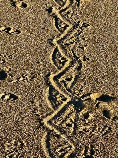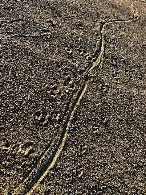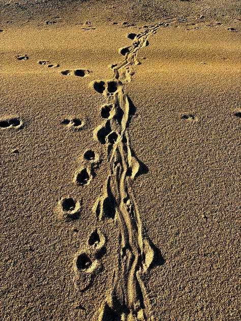 Monarch Migration: Every day in October we witnessed endless trails of monarch butterflies migrating downstream, seeming to follow the chain of big river islands, north to south, replenishing themselves on milkweed and goldenrod, when available. They also seem to be finding much-needed sustenance making landing amongst the bushes of Indian Heliotrope. Now that things are finally cooling down in November, the migration has slowed to a trickle. Over the past 2 weeks we have witnessed maybe one or two a day.Mystery Tracks: Does anyone know what caused these tracks? We found them all within the same vicinity of the same sandbar beach, on water's edge leading into interior. (Sunset on the eve of Full Beaver Super Moon!) There are coyote tracks on outer edges. As if dragging its leg? Or following something else? If so, what is that something else?