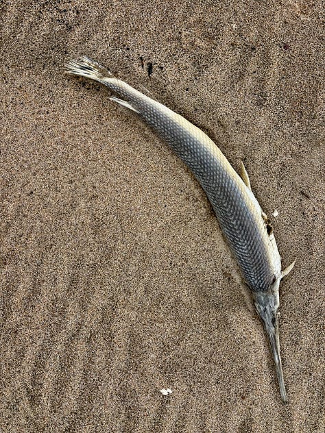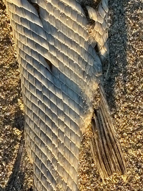 Fall migration is on: we've been seeing flocks of ibis, mergansers, coots, pelicans, and red-winged blackbirds. A few flocks of cedar waxwings, who seem to arrive with cold spells; also Snow Geese, who come with the cold, and fill the starry nights with their lonesome heartbreaking cries.2025: Another Historic Low Water Year: It's so low we're also seeing a lot of fish like gar and carp getting trapped in wetlands -- those that get isolated from the big river as the water drains out, and traps them in pools and low places. Often becoming an all-you-can-eat buffet for eagles, waterfowl, coyote, and bobcat. If drought persists, these wet places eventually dry out, and the fish also. We've been seeing a lot of bobcat tracks this year, on every island we stop on and explore. We can tell what they are eating by their poop. Ditto for coyote.