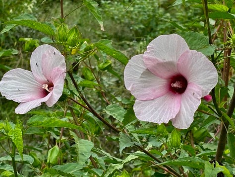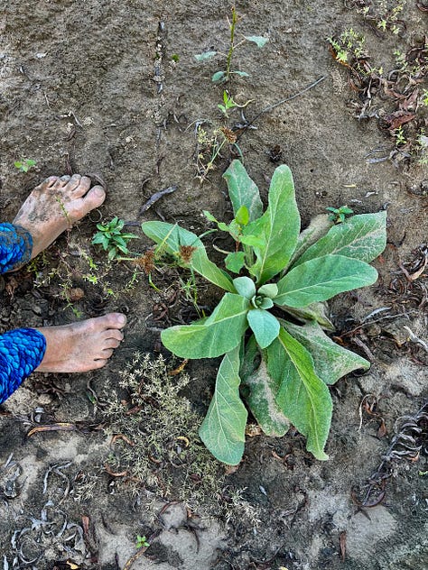 Flora & Fungi: clockwise from upper left: Canada Goldenrod, Oyster Mushrooms, Moss-Rose Purslane, unkown bean, Sunshine Mimosa, Mullein, Hibiscus (Marsh Mallow), unknown mushroom, Camphor-weed. We have been seeing Water Hyacinth floating in the river, below the White and Arkansas River Confluences. We have also found tumbleweeds flowering, in their green stage, on some of the islands (notably Is. 67).