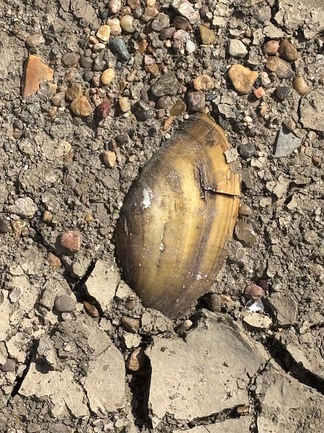 Also, turtle shells and mussel shells found within dried muddy & sandy wetlands: